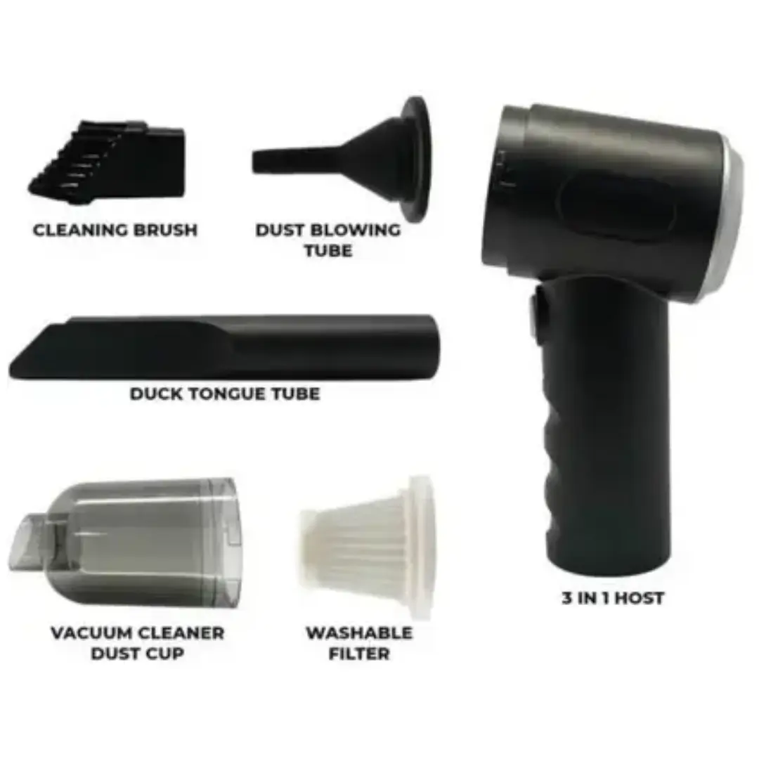 Mantén tus espacios impecables con la Mini Aspiradora Inalámbrica 3 en 1, diseñada para ofrecer una limpieza eficiente y sin complicaciones en el hogar, la oficina o el automóvil.