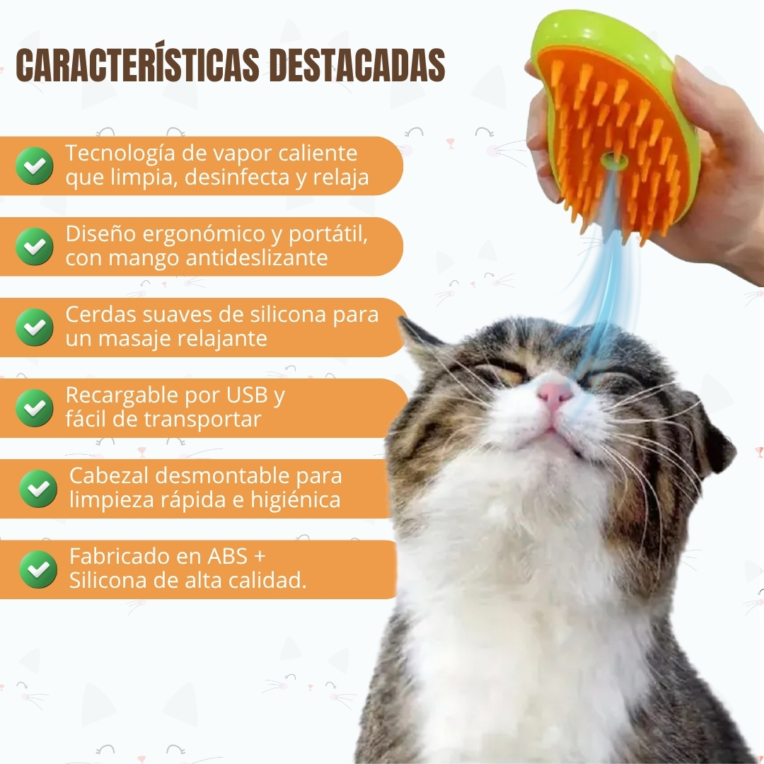 El Cepillo de Vapor 3 en 1 es la solución definitiva para mantener el pelaje de tu mascota limpio, brillante y sin enredos, mientras le brindas una experiencia relajante tipo spa desde casa.