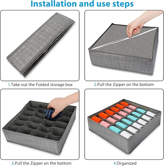 Mantén tu ropa interior perfectamente ordenada con estos organizadores de tela plegables. Ideales para sujetadores, calcetines, corbatas y bufandas, te ayudan a ahorrar espacio y encontrar todo con facilidad. ¡Adiós al desorden! 👋🧺